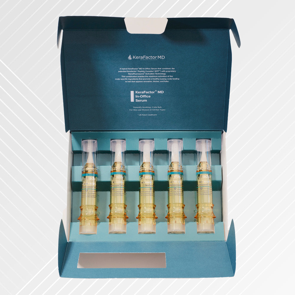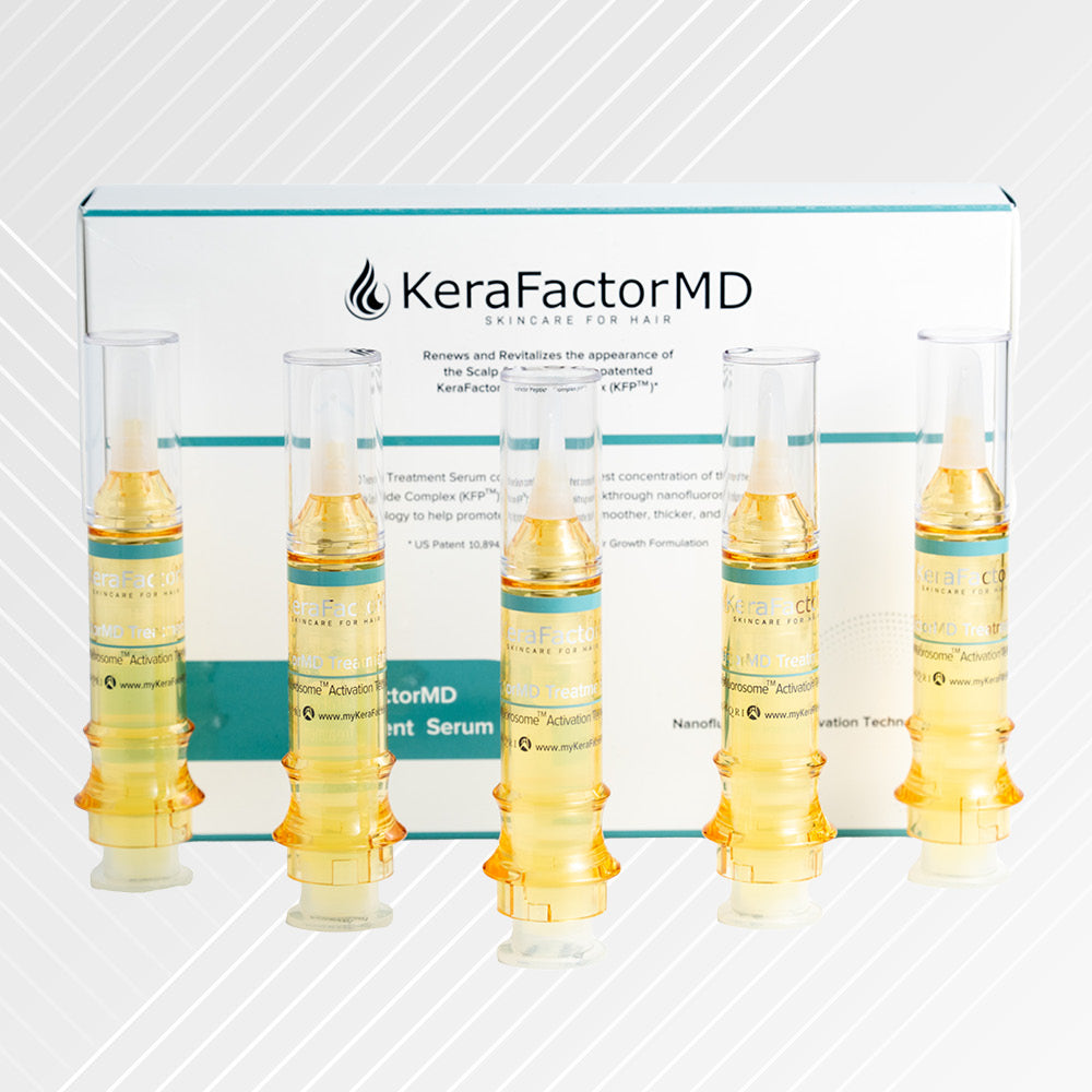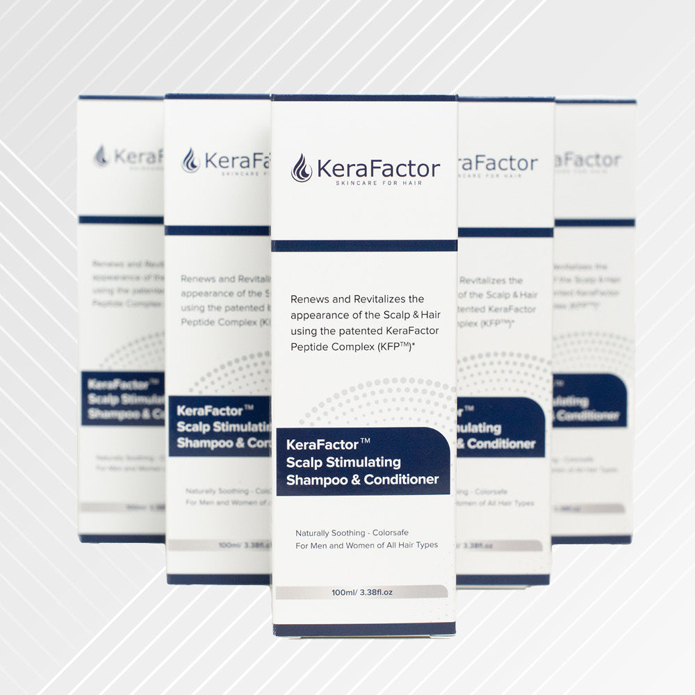 KeraFactor works by delivering a proprietary blend of growth factors and proteins directly to the scalp, stimulating hair follicles and promoting healthier, promoting healthier, thicker looking hair.
