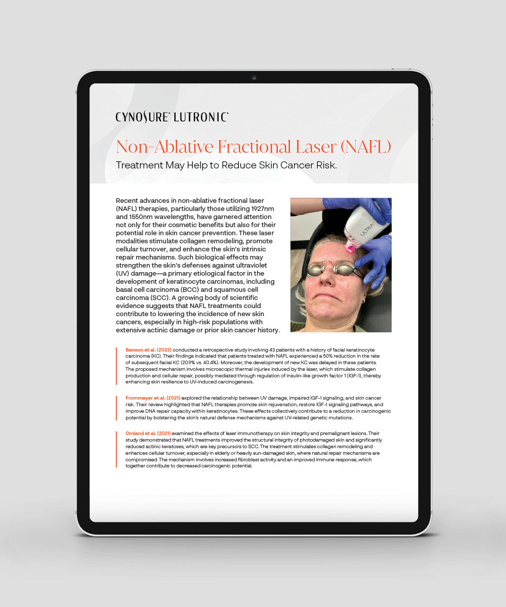Emerging research indicates non-ablative fractional laser (NAFL) treatments may support long-term skin health by reducing actinic damage, improving immune function, and enhancing DNA repair. Studies report reductions in new keratinocyte carcinomas and precancerous lesions in high-risk patients.